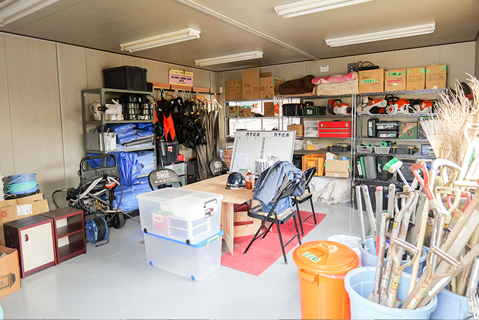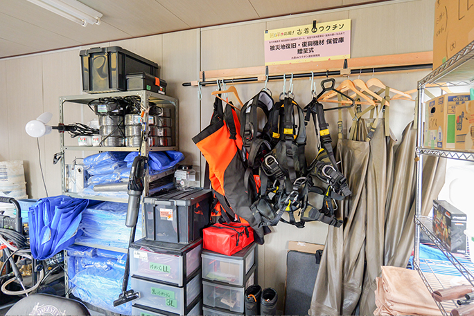 第一弾の支援として、リガーレの活動拠点に「被災地復旧・復興機材保管庫」を贈呈させていただきました。