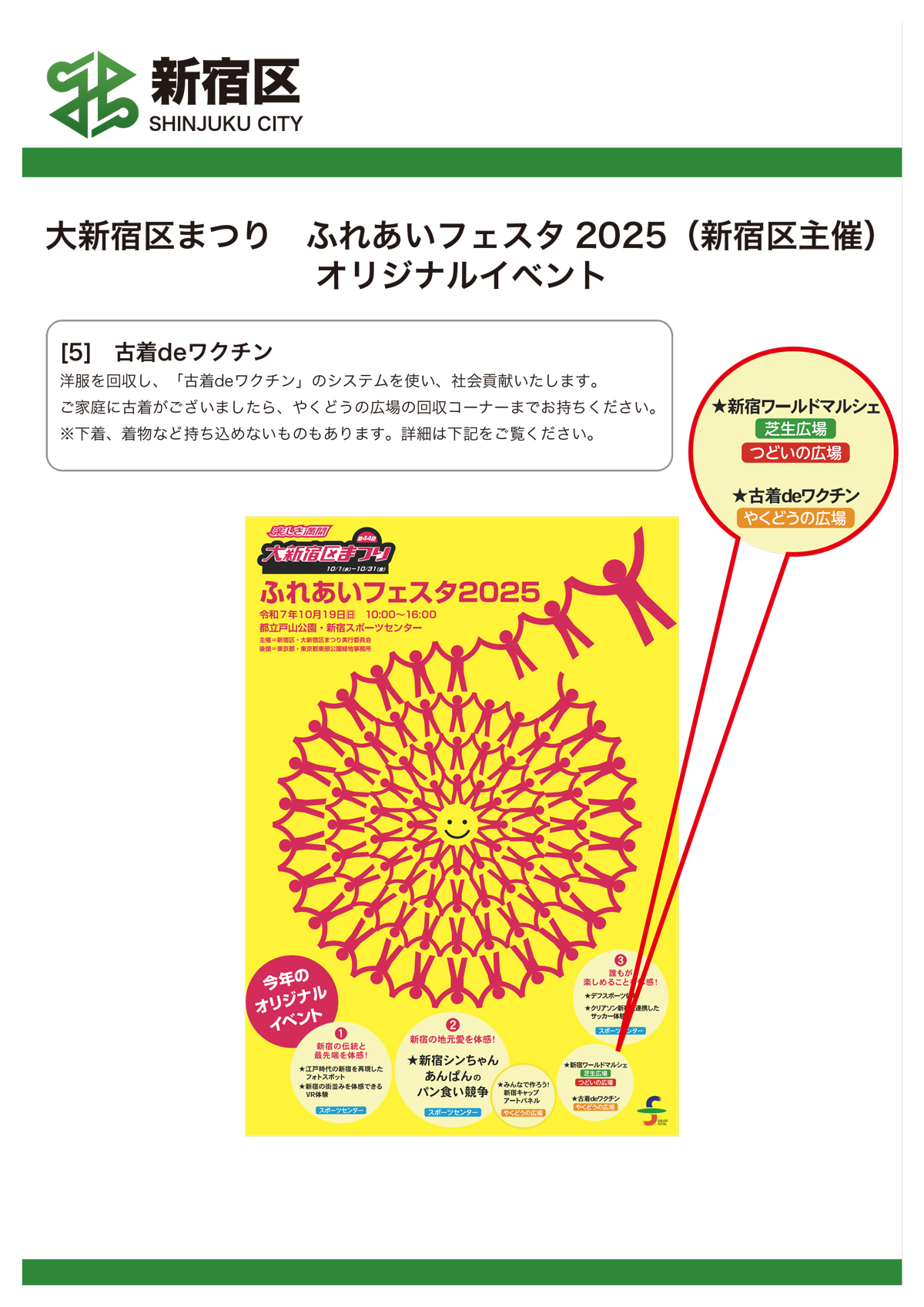 【東京都新宿区主催】ふれあいフェスタにて「古着deワクチン」イベントが開催されました。